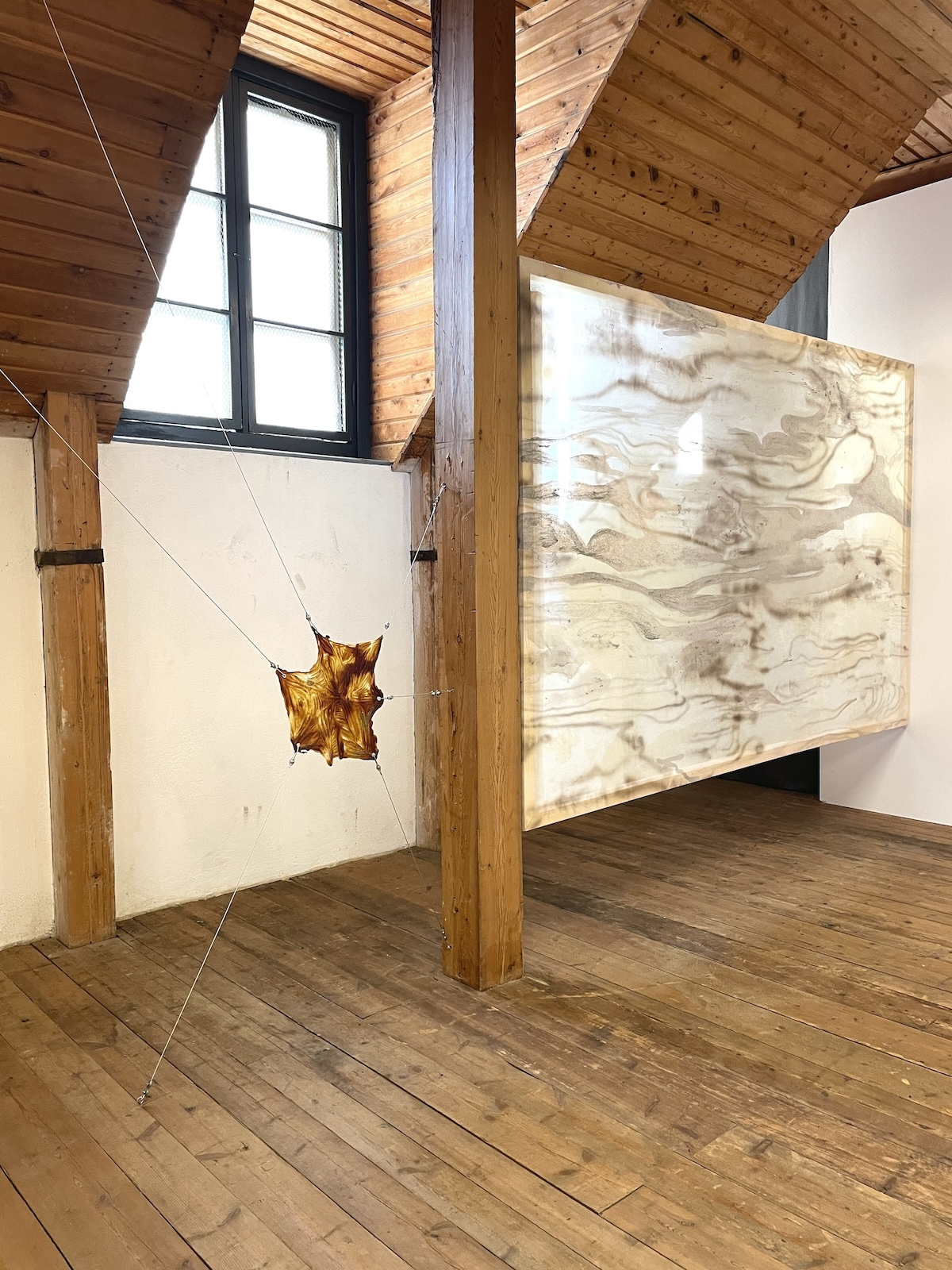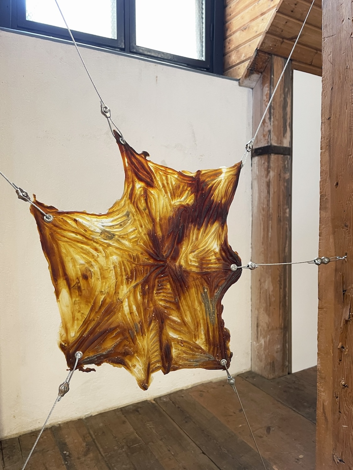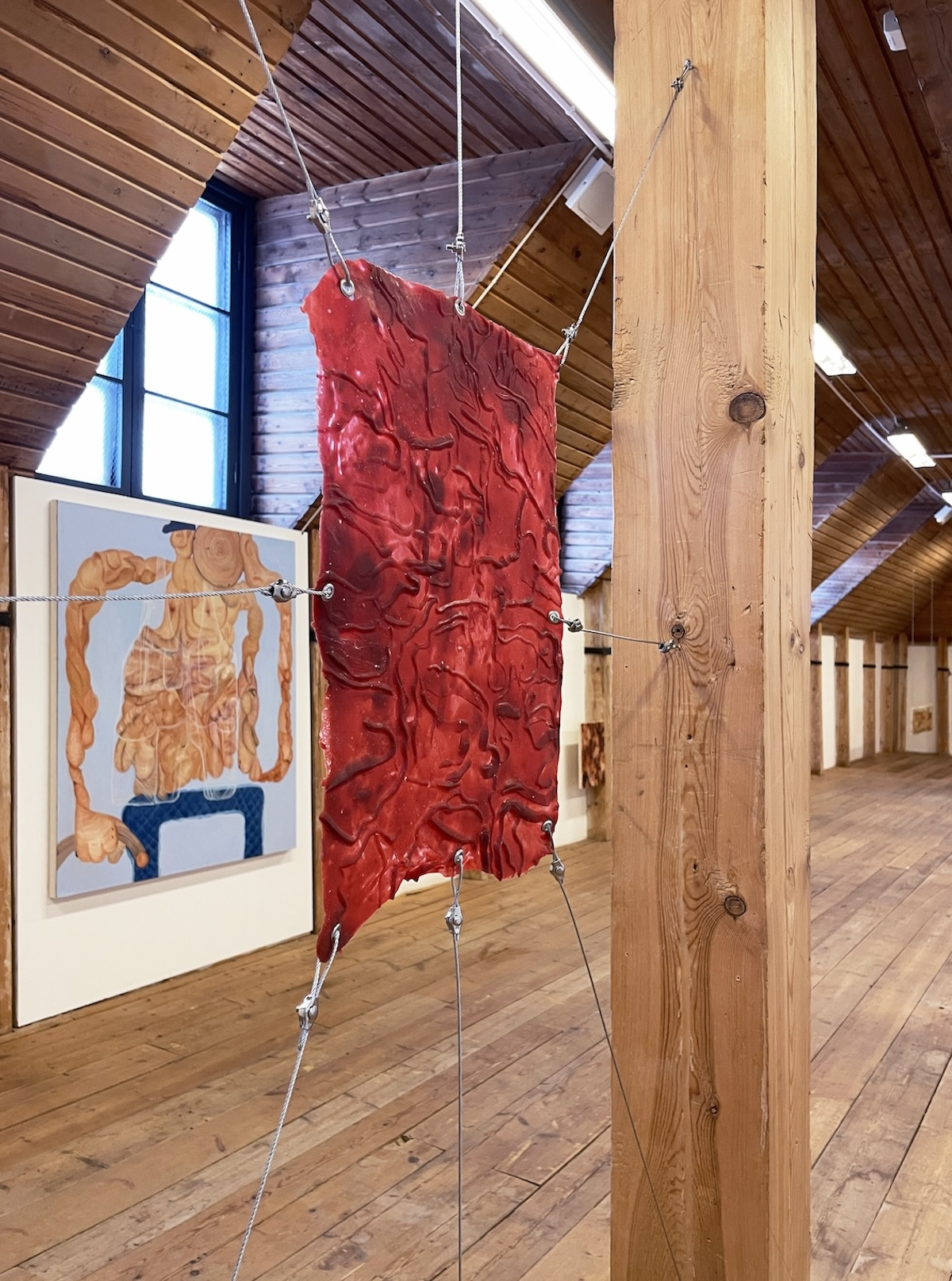 Hanna Kanto’s work is a collection of gestures regarding entanglements with “nature” explored in different materials and media, varying from latex and/or resin casting to oil painting and berry juice cooking. All elements that with great humor and insight are emphasized through the contrasting aspects Kanto brings forth, assembling and rendering visible the complexities involved in her native northern Finland ́s – not to say “our” – relationship with nature, ranging from worshiping its beauty, being grateful for the moments of peace and tranquility that it provides, as well as exploiting it as a way of sustaining our life style and the society of consumption we have constructed. Kanto’s works unfold all the contradictions and entanglements of this relationship: the spiritual, the mundane and vernacular, the industrial and/or exploitative, and all in-betweens.