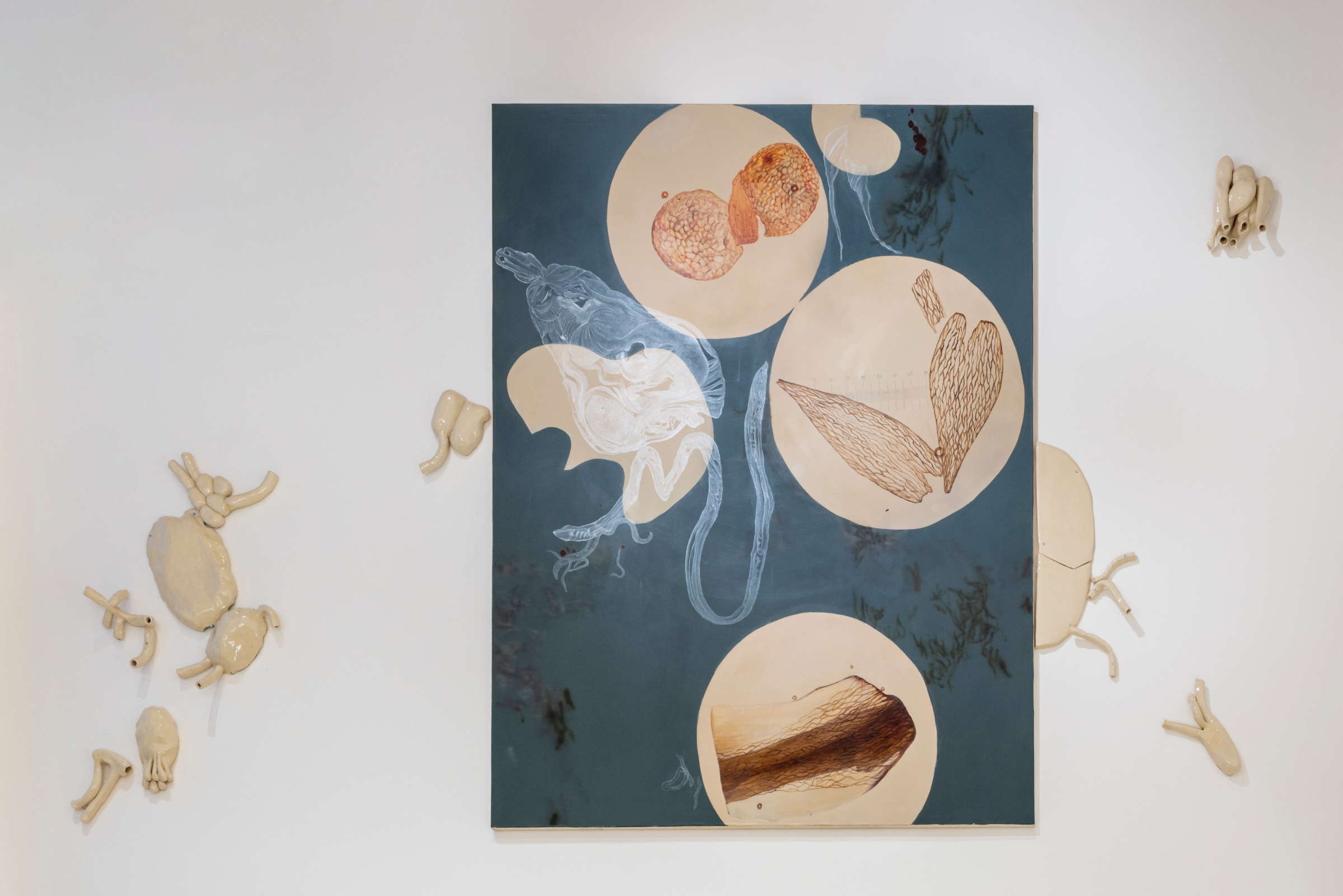 250x400cm, acrylic and oil on canvas, glazed stoneware