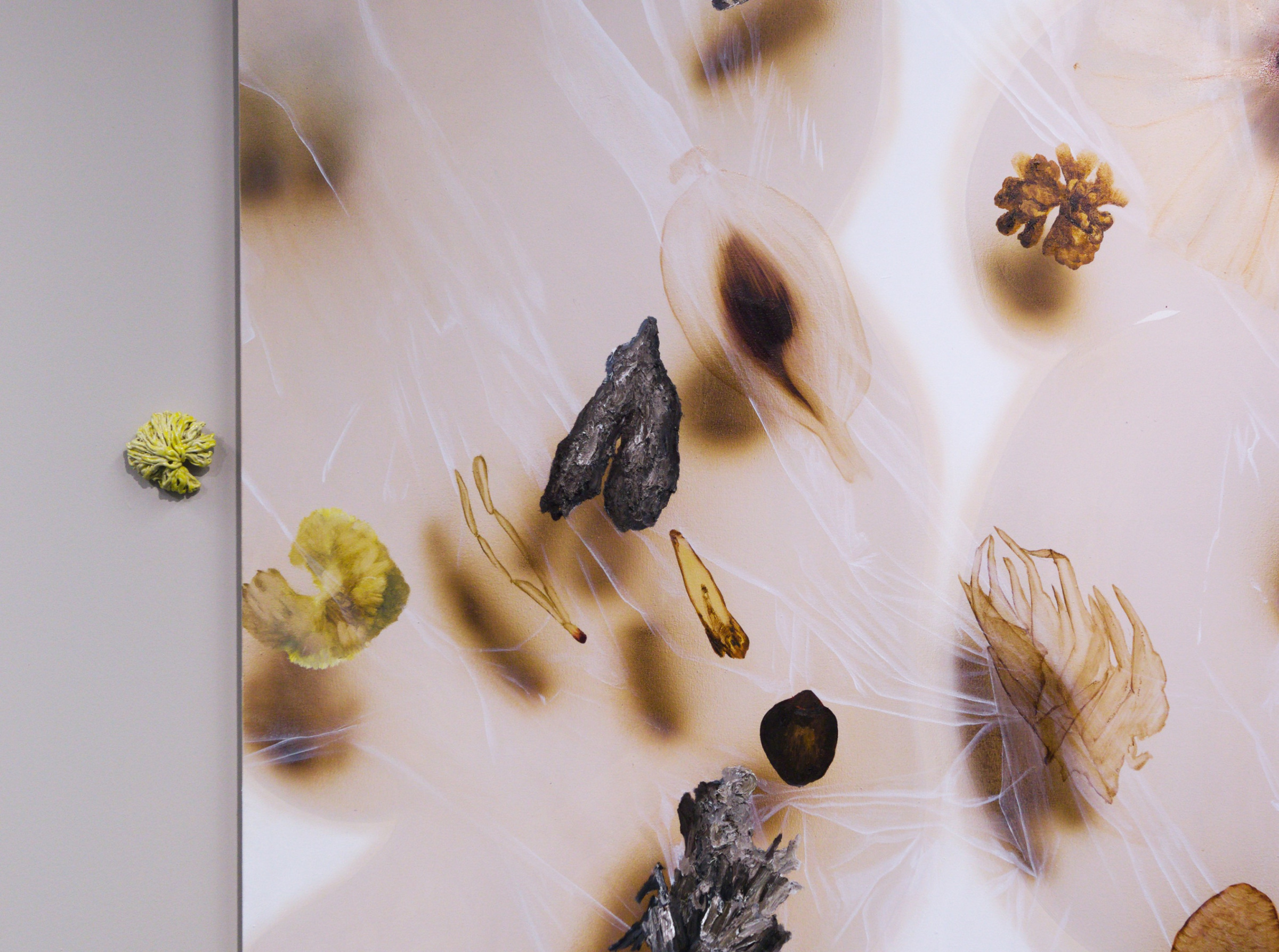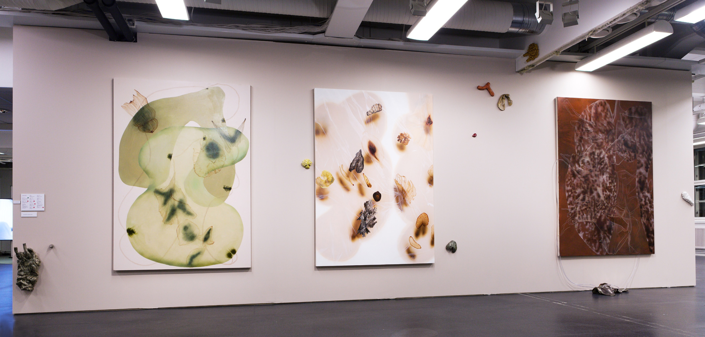 In the summer of 2018, I had the opportunity to observe the fieldwork of a scientific expedition in Kilpisjärvi. By using delicate research instruments and statistical modelling, the researchers could reveal phenomena related to the soil, vegetation, cycle of elements and climate, which lie beyond the reach of the naked eye. My artistic work is based on the objects of the research project, the equipment used in the project and the information gained from the results. The connections between the elements take place at different levels, and the changes in them mutually affect each other. These themes emerge repeatedly in my paintings due to the layered character of my artistic practice.